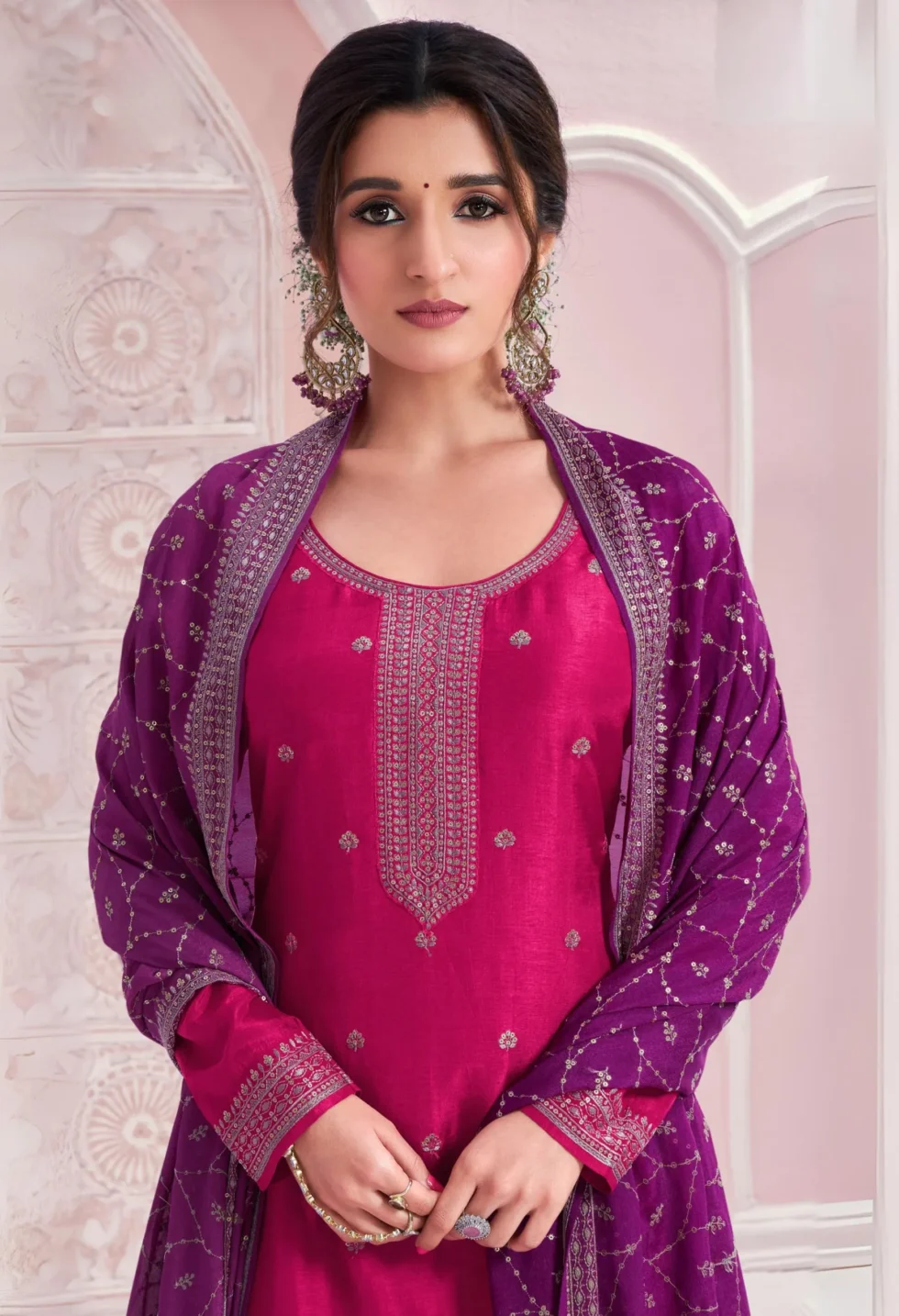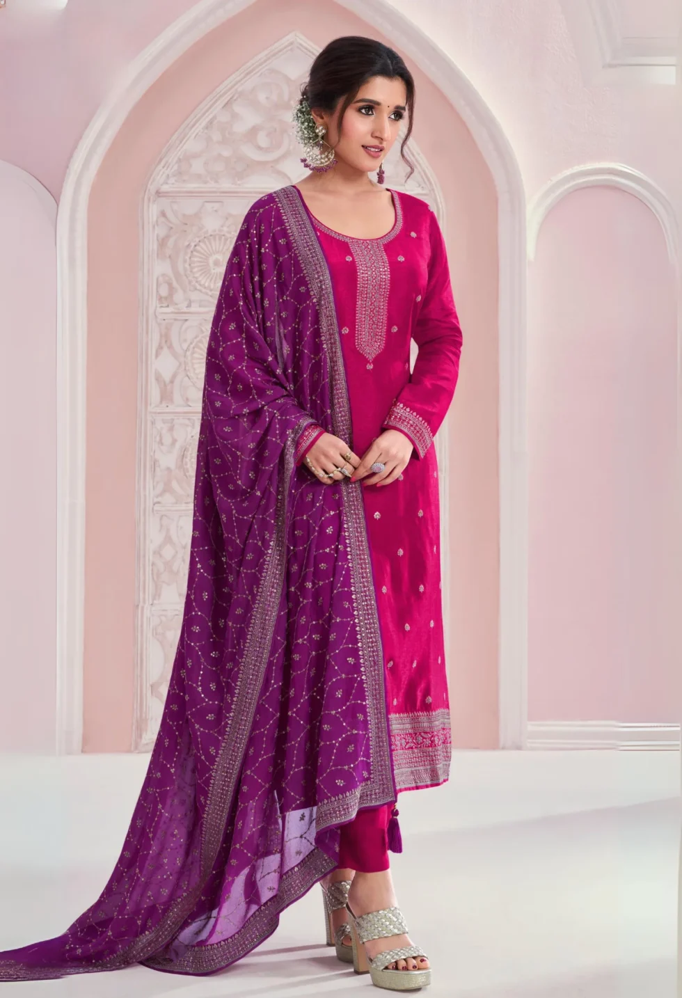 Introducing the Memsaab Hot Pink Thread Embroidered Silk Suit Set, a captivating blend of elegance and contemporary style. Perfect for weddings, festive events, and special occasions, this suit set is designed to make you stand out. Key features include: