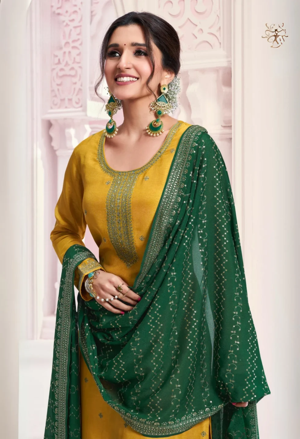 Introducing the Memsaab Mustard Thread Embroidered Silk Suit Set, a beautiful combination of traditional craftsmanship and contemporary elegance. Perfect for weddings, festive occasions, and special events, this suit set brings a touch of sophistication and style. Key features include: