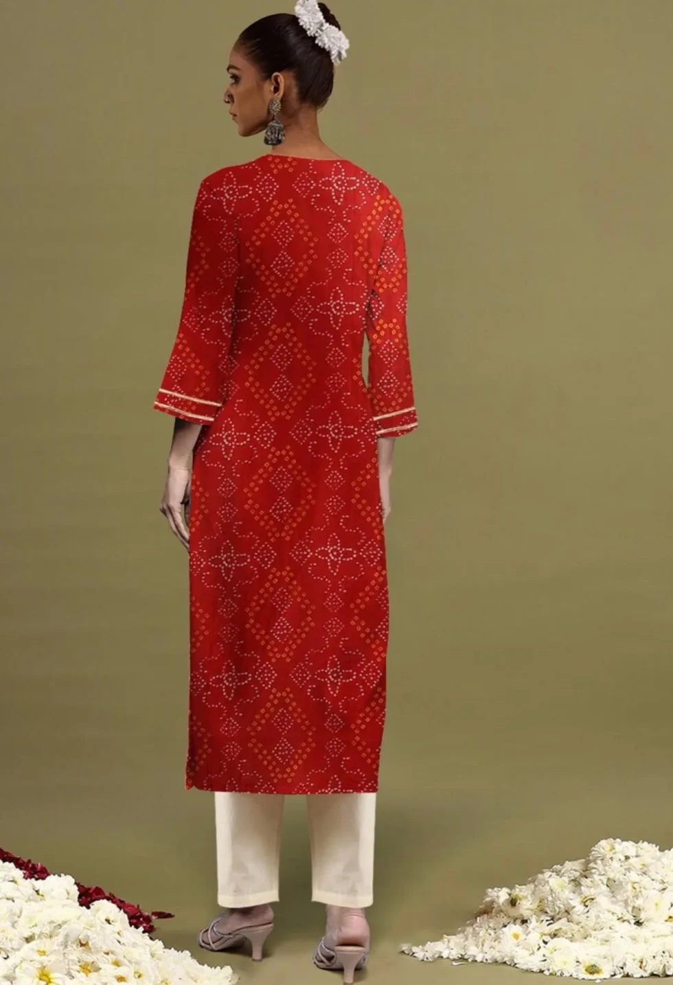 Enhance your style with the Memsaab Red Floral Printed Cotton Kurta, featuring a round neck and delicate thread work for a charming and elegant look.